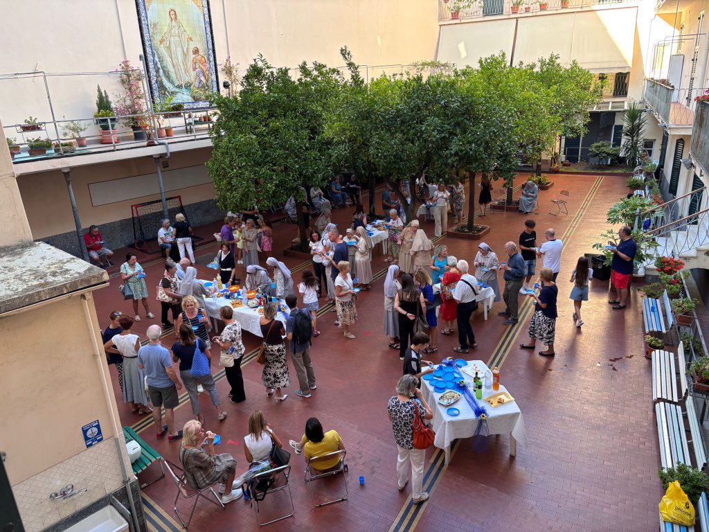 Al termine della celebrazione, la festa è continuata nel cortile della casa madre con un momento di rinfresco condiviso, in semplicità e fraternità. Uno spazio di dialogo e relazioni, che ha prolungato nella quotidianità ciò che era stato celebrato nella liturgia.